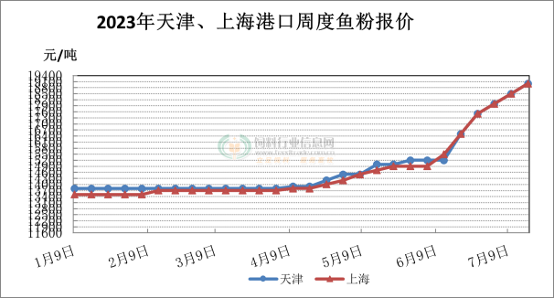 截止至2023年7月17日,港口魚粉庫存為17.12萬噸,較月初下降2.54萬噸。港口魚粉庫存的持續下降,提振魚粉供應商的挺價意愿。